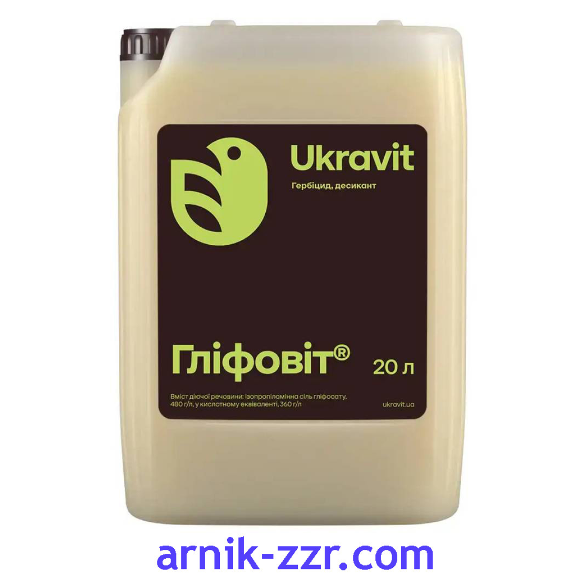 Ізопропіламінна сіль гліфосату, 480 г/л, у кислотному еквіваленті, 360 г/л. |