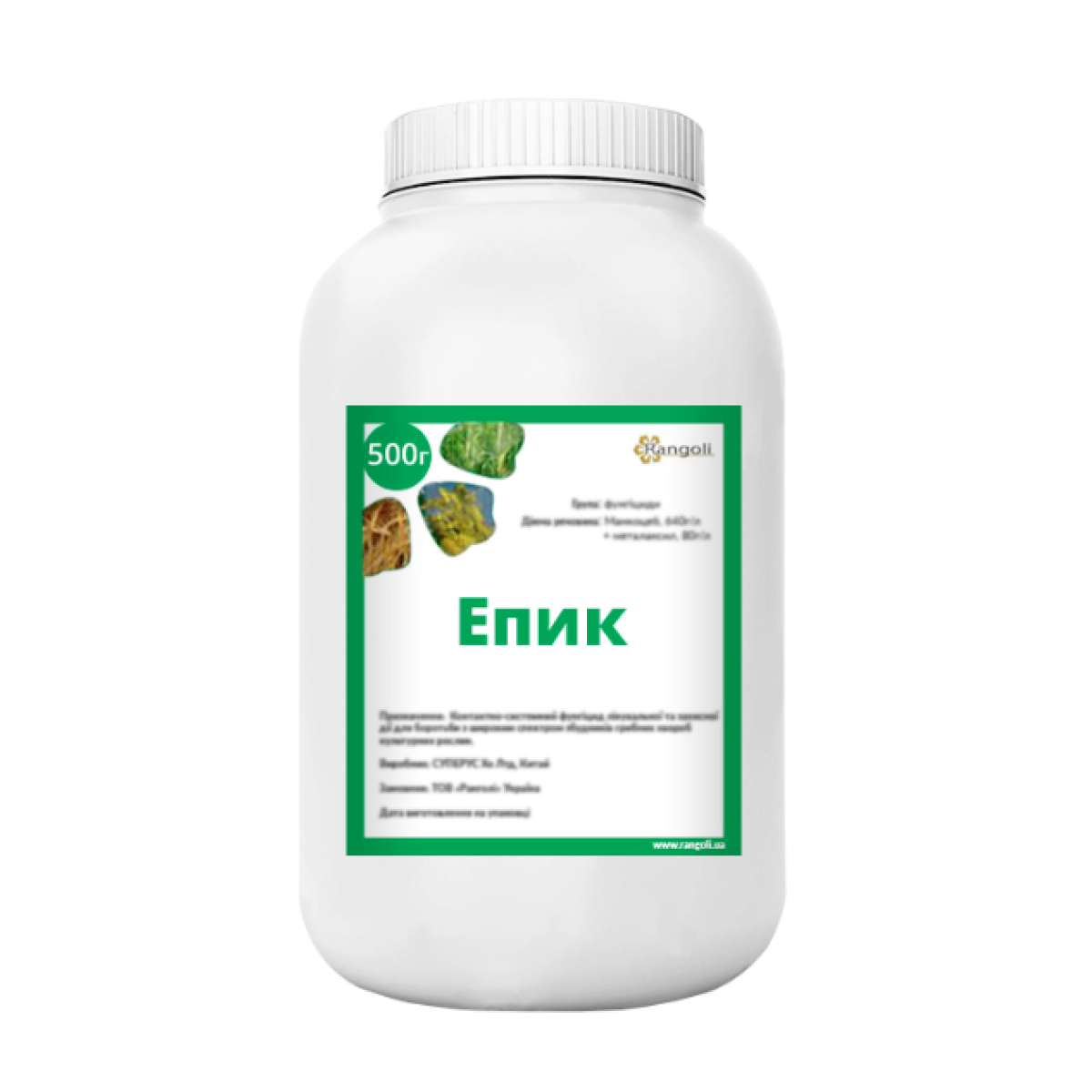 Епік є фунгіцидом, що містить дві біологічно активних діючих речовини: 25% цимоксанілу та 25% фамоксадону. Фамоксадон зберігається у восковому шарі кутикули і має захисну дію. Цимоксаніл проникає крізь листя і має лікувальну дію. Завдяки здатності зв’язуватись з епітикулярним воском, фамоксадон створює на поверхні листка плівку і діє як захисний бар’єр, що запобігає проникненню патогена всередину рослини. Крім того, фамоксадон має ефект реактивації. При потраплянні краплі дощу на листок відбувається перерозподілення фамоксадону по поверхні листка. Фамоксадон швидко проникає вглиб тканин рослини, і тому дощ, що випав через 2 години після обробки, не зменшує ефективності дії фунгіциду.
