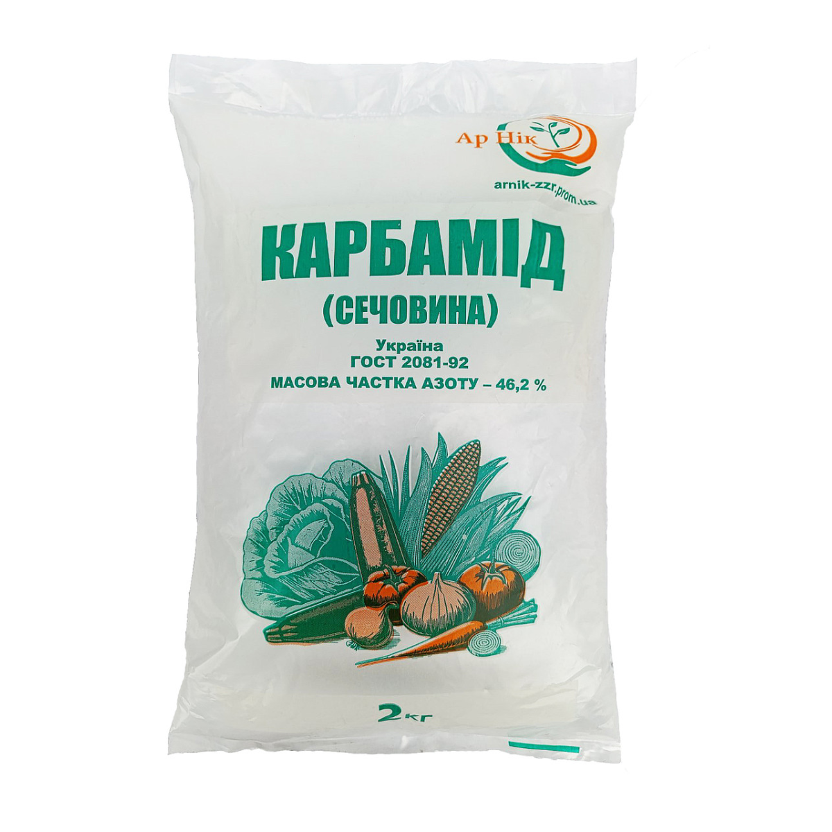 Карбамід N-46.2 (сечовина) CO(NH2)2 – це концентроване азотне добриво, яке відноситься до категорії універсальних. Дрібнокристалічний продукт білого кольору, до складу якого входить не менше 46,2% азоту. Рекомендується застосовувати як добриво чи підживлення для всіх сільськогосподарських культур. Прекрасно розчиняється у воді. Сечовина є одним із найефективніших добрив, що містять азот, який активно стимулює та сприяє росту рослин.