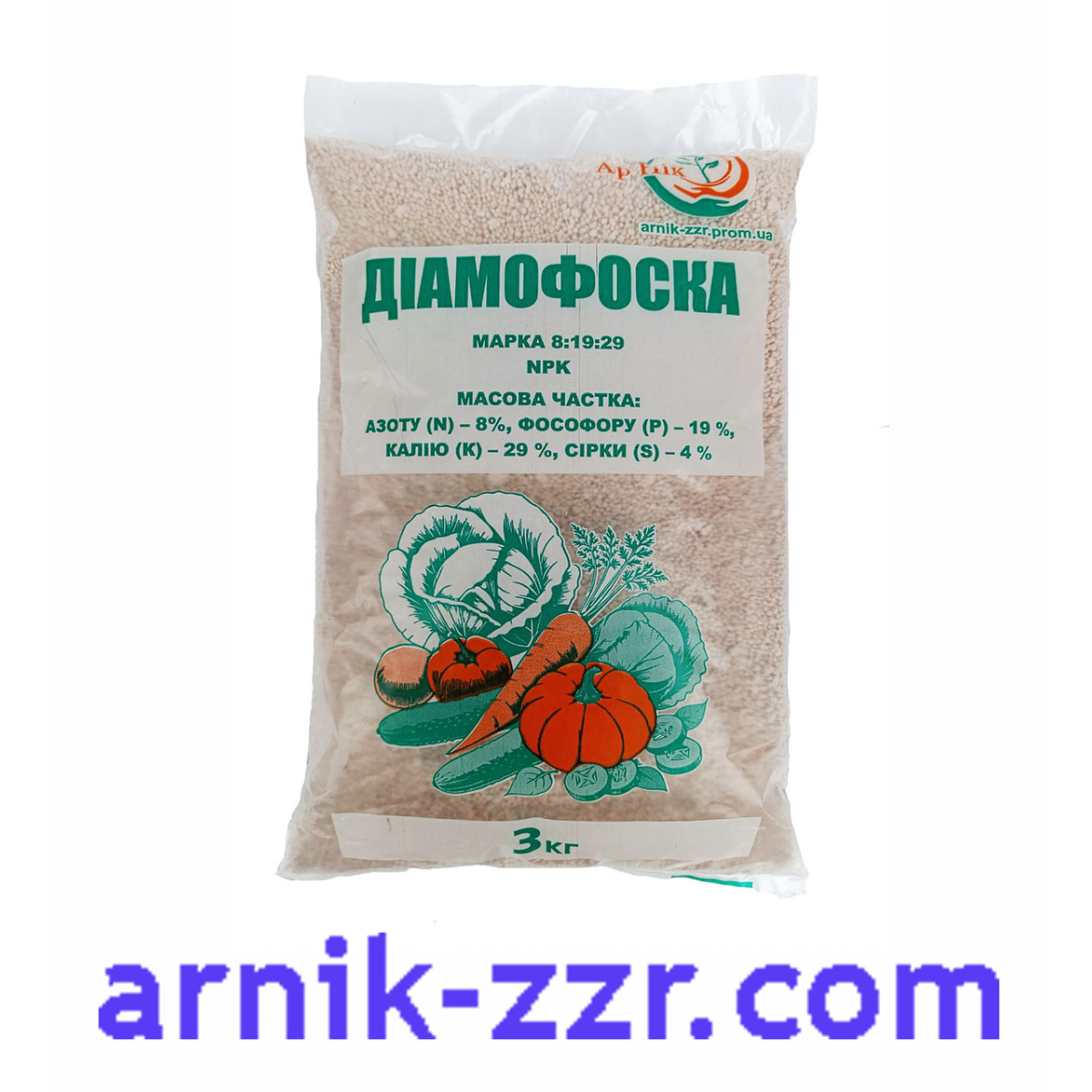 Добриво складається з 8% азоту, 19% калію і 29% фосфору. Саме завдяки такій «будові» воно м’яко тонізує масиви ґрунту, а не висушує його як сорт з однаковим вмістом усіх трьох речовин. Поряд з цим, ґрунт добре насичується такими елементами як калій і фосфор, яких тут більше. Це дозволяє покращити стан не тільки ґрунту і виростити чудові нові культури, а й реабілітувати старі рослини.
