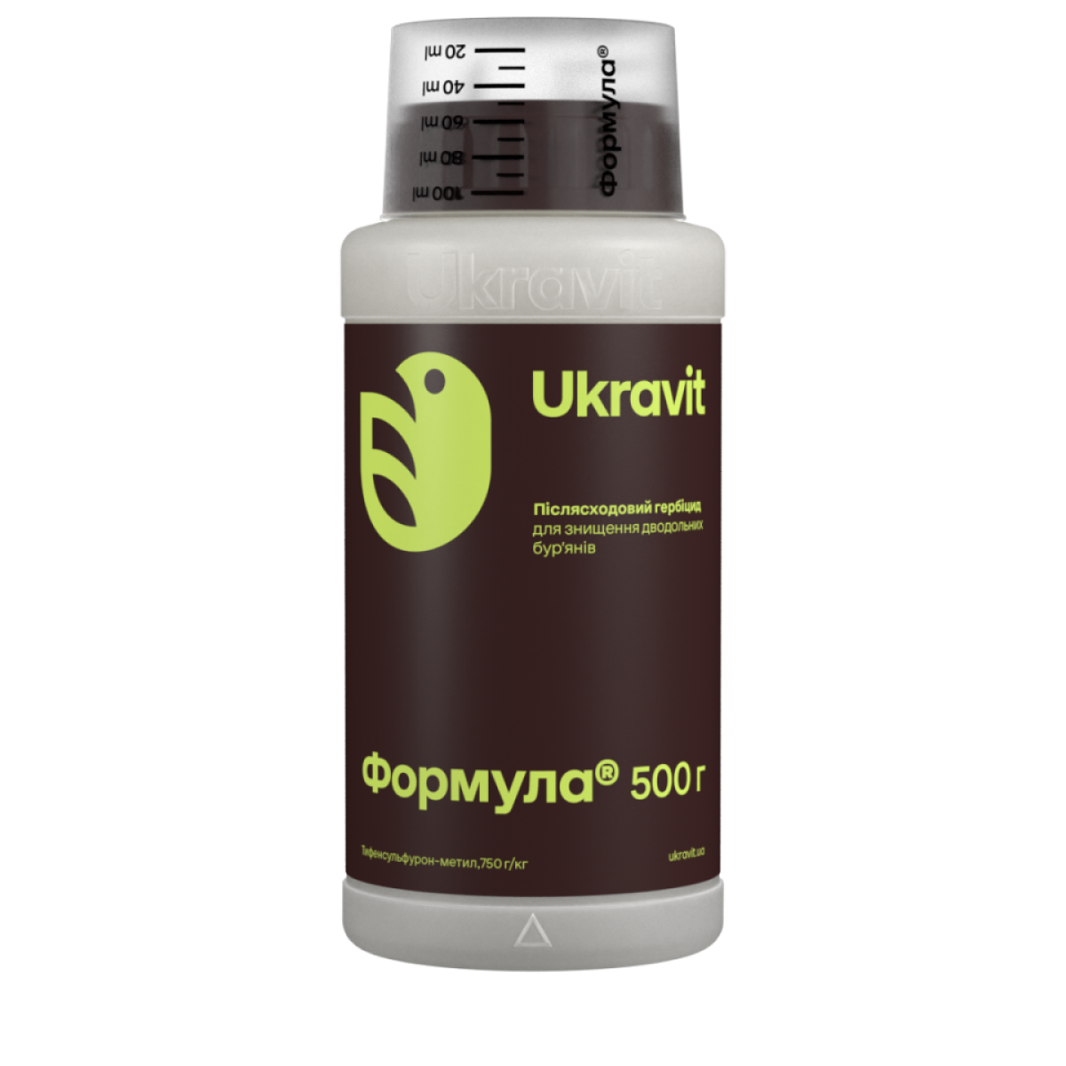 Гербіцид Формула – післясходовий гербіцид системної дії для знищення однорічних дводольних бур“янів у посівах зернових колосових, сої, кукурудзи та льону. Діюча речовина: тифенсульфурон-метил (750 г/кг). Препарат проникає через листя, накопичується в точках росту та блокує поділ клітин бур“янів. Відзначається високою селективністю, контролює понад 30 видів бур“янів, не має обмежень у сівозміні. Застосовується у нормі 6-25 г/га з додаванням ПАР Тандем (0,3 л/га). Випускається у формі гранул, що диспергуються у воді, у тарі 500 та 50 г.