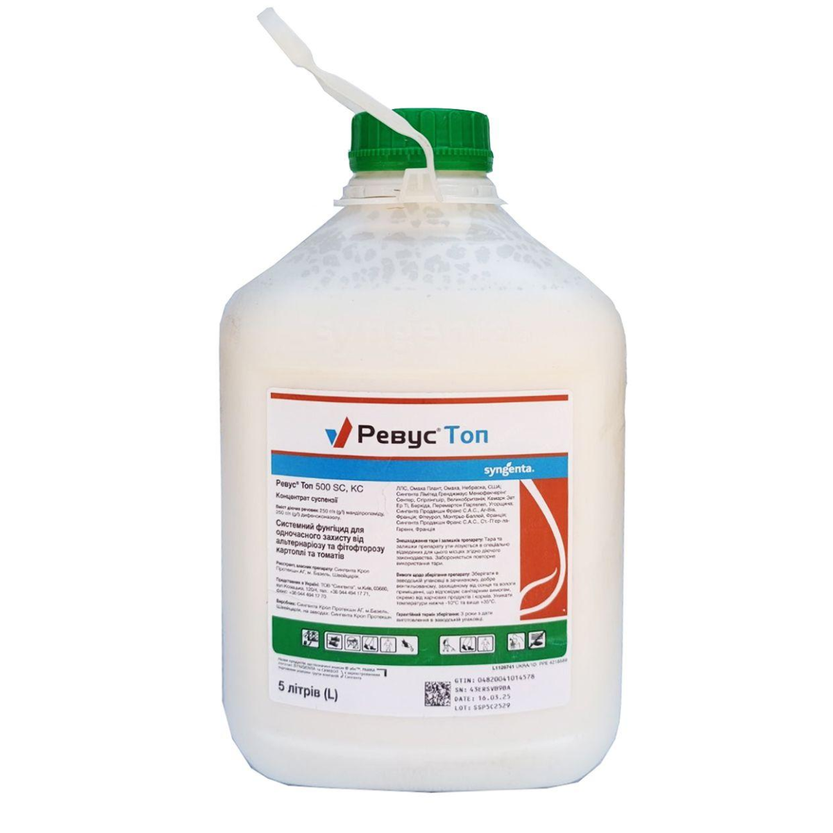 Ревус Топ 500 SC, КС - системний фунгіцид, який запобігає проростанню спор, а також пригнічує ріст міцелію і утворення спор, високоефективний проти альтернаріозу, фітофторозу, пероноспорозу, септоріозу, макроспоріозу на багатьох сільськогосподарських культурах.